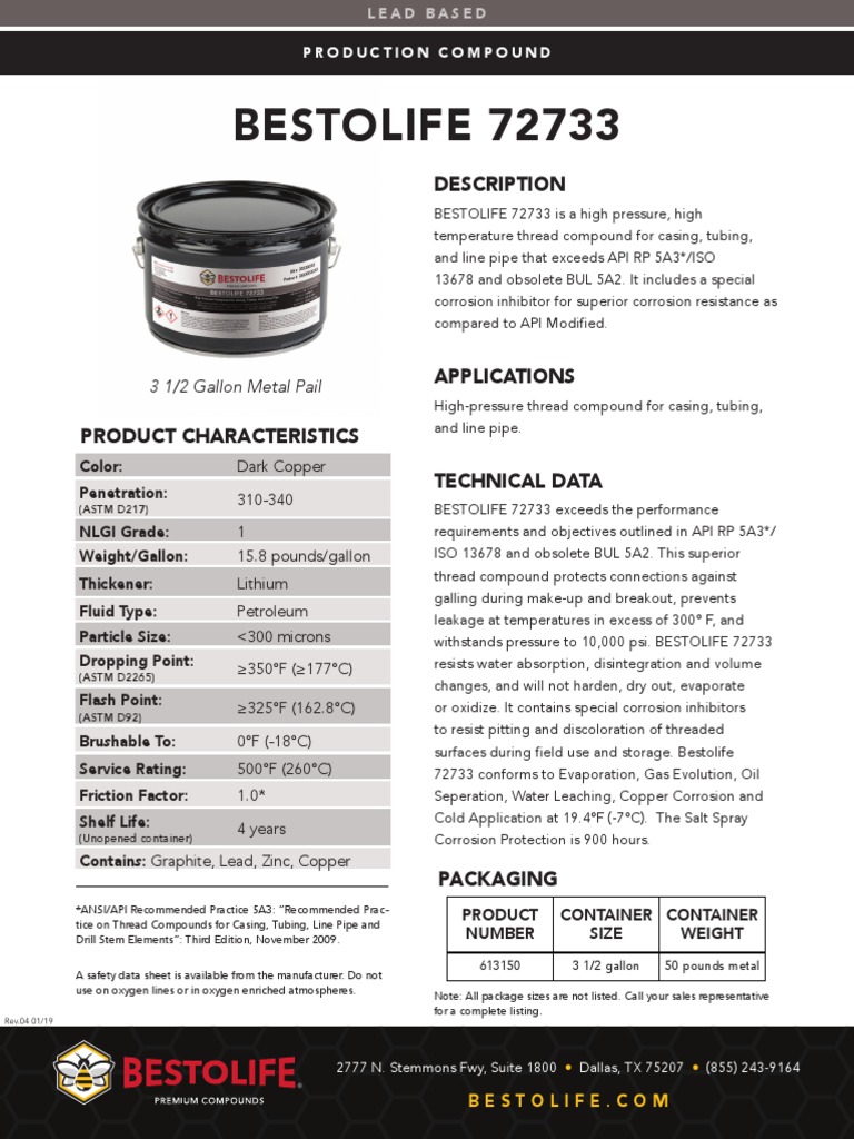 12 08 2015 date of first issue. Bestolife ptc production compound non metallic description bestolife ptc is a nonmetallic thread compound for premium self sealing connections. Laboratory tests confirm superior storage protection based on 4000 lab hours which is equal to 4 years. 04 06 2015 4 18 handle in accordance with good industrial hygiene and safety practice.